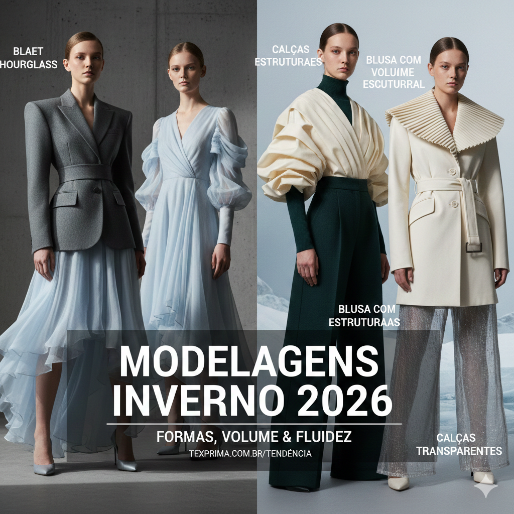 Nesta matéria reunimos as principais apostas que têm ganhado espaço nas passarelas e coleções, para inspirar as suas próximas criações. No inverno 26 os volumes esculpidos, estruturas geométricas e fluidez